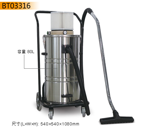 产品特点 ·拥有两个气动吹刀,吹力强劲,轻按按钮,可自动吹气将过滤器上的粉尘清理干净。 ·以压缩空气为动力,无过热现象产生,可以长时间连续工作,质量稳定。 ·标配双高效过滤器+纸尘袋,0.3um微米粉尘过滤效果为99.99%。 ·机器噪音小,吸力强。可配套生产线或设备使用。 ·60L/80L不锈钢集尘桶可收集各种物质,不易损坏。 ·加固型全金属可翻转桶体车架,耐用、方便。 ·采用前轮PU轮,后轮橡胶轮,坚固耐用,机器推动时静音效果好,能适用于环境恶劣的重工业场所。
