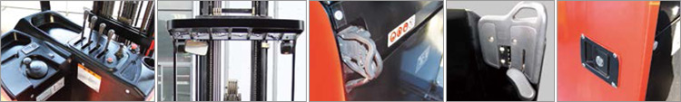 ·窄通道、高货架货物堆垛的最佳选择; ·站驾操作,视野宽广,作业方便; ·电转向控制,舒适高效!