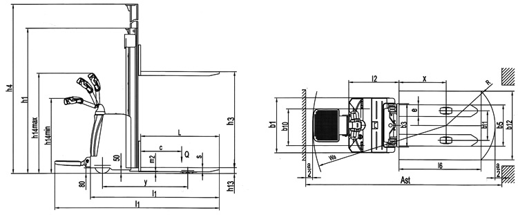 | 货叉下降后高度(h13) |