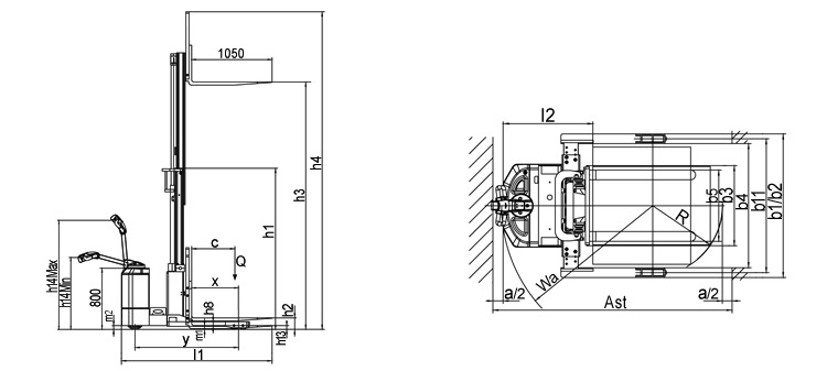 | 托盘为 1200宽×1000长的通道宽度(Ast) |