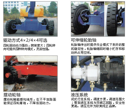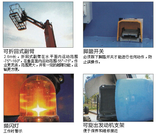 选配装置 ·2轮驱动 ·2轮转向 ·Perkins发动机 ·工作台通气 ·工作台通电 ·平台工作灯 ·发泡轮胎