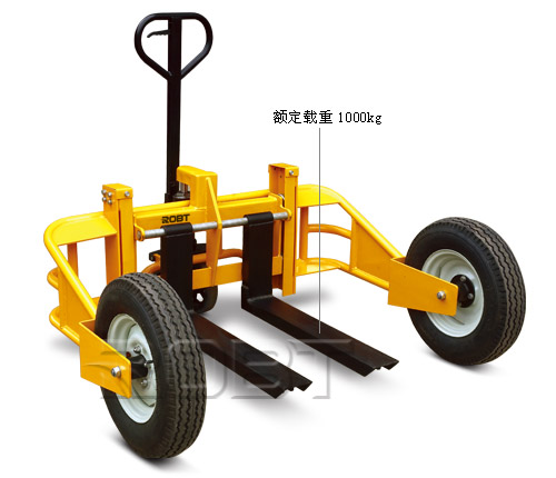 • 专用于堆场、花园中心或只能选用铲车来搬运托盘的露天场所,这些场所通常的铲车甚至是液压托盘搬运车都没法开(例如:铲车就没有办法升到顶盖)• 大型轮胎和支腿设计可用于任何类型托盘在不平地面上的搬运• 安装简便,以未组装方式发送