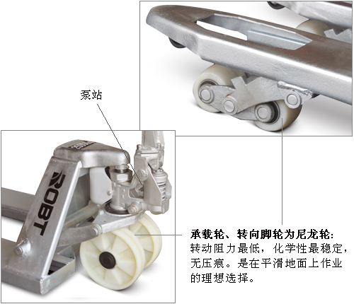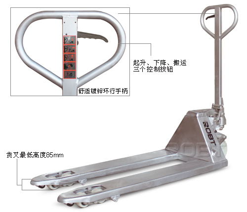 • 广泛适用于易腐蚀环境,冷气空间或干净空间;• 镀铬活塞和阀门;• 电镀结构包括货叉框架、轮架、推杆和舵柄;• 防漏和真空设计型电镀泵;• 重载单片"C”型货叉确保达到最大强度和耐用性;• 货叉低放高度可达75毫米(3”)。• 安装简便,以未组装方式发送